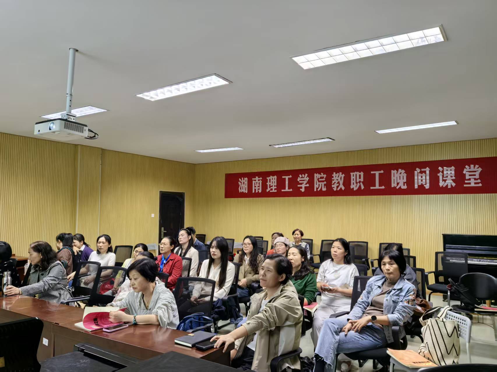 2025年10月15日晚7:30,湖南理工学院教职工晚间课堂系列活动之《钢琴演奏与弹唱》专题讲座在温馨愉悦的氛围中成功举行。