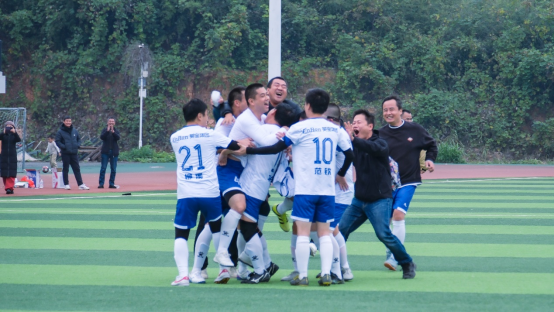 点球大战成为冠军归属的终极考验。教工队率先登场的付亚子老师顶住压力,精准将球送入死角,为球队奠定优势。在随后的较量中,教工队的柳溪老师和曾律弦老师沉着施射,角度刁钻;门将向南老师则延续了决赛中的出色状态,不仅扑出了对方关键点球,还亲自罚进一球。随着数学学院最后一名队员将点球罚失,全场瞬间沸腾。教工队队员们冲向门将,紧紧相拥,教练组也激动地奔入场内,与全队共同欢庆胜利。