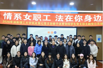 为深入落实省总工会普法工作部署,切实维护女职工合法权益,2026年3月17日14:00,湖南理工大学机关第七党支部牵手体育学院学生党支部,于17栋教学楼联合开展“情系女职工·法在你身边”主题党日活动。工会常务副主席张泰来,工会副主席、女工委主任、机关第七党支部书记李丽荣,体育学院书记石军、副书记李凯等领导出席活动,全体党员及普法志愿者共同参加本次活动。