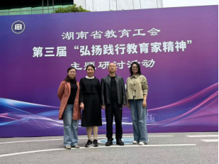 为深入弘扬和践行新时代教育家精神,持续强化教职工思想政治引领,夯实师德师风建设根基,提升工会服务育人、赋能教师队伍建设的履职能力,4月24日上午,湖南省教育工会第三届“弘扬践行教育家精神”主题研讨活动在湖南师范大学附属中学隆重举办。我校工会常务副主席张泰来率工会骨干及优秀教职工代表一行四人应邀参会,全程参与主旨报告、主题沙龙、专题研讨等各项议程,近距离聆听权威解读、借鉴先进育人经验、感悟榜样初心力量。