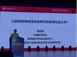 在精彩纷呈的“弘道论见”主旨报告环节,各位专家学者从历史溯源、理论阐释、实践落地、知行体悟等多元维度,全方位、深层次解读新时代教育家精神的丰富内涵。中国教育学会副会长李政涛聚焦日常教育场景,系统梳理了教育家精神落地课堂、融入育人细节的实践路径,阐明教育之道即育人之道;长江学者刘海峰立足中华千年教育文脉,从孔子、韩愈、蔡元培等历代教育名家的教育理念与实践中,溯源教育家精神的文化根基与精神内核;北京大学文东茅教授以“立志、修身、传道”为核心维度,阐释了新时代教师践行教育家精神的修行之道,指出育人修行贵在知行合一、久久为功。