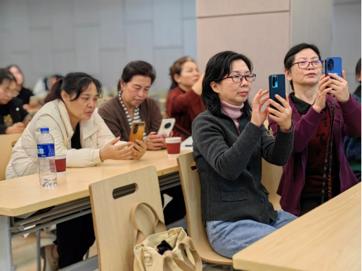曾教授从手机摄影的功能、方法、注意事项等几个方面进行了深入讲授,从基础的构图法则、光线运用,到手机相机的各项功能解析;从日常场景的拍摄技巧,到后期处理的简单妙招,不仅分享了理论知识,更结合大量生动的案例,给大家耐心、细致、生动讲解如何才能拍出一张好的手机摄影作品。当他讲到摄影构图、手机相机功能设置、亮度的调节、焦距的选择、大光圈的使用等技能时,学员们纷纷拿出手机开始按老师的方法进行操作,大家惊喜地发现,自己拍出的照片瞬间就比以前拍的好看多了,再利用老师推荐的手机摄影处理软件将照片进行适度的裁剪修饰,又获得了各种不同风格的照片。